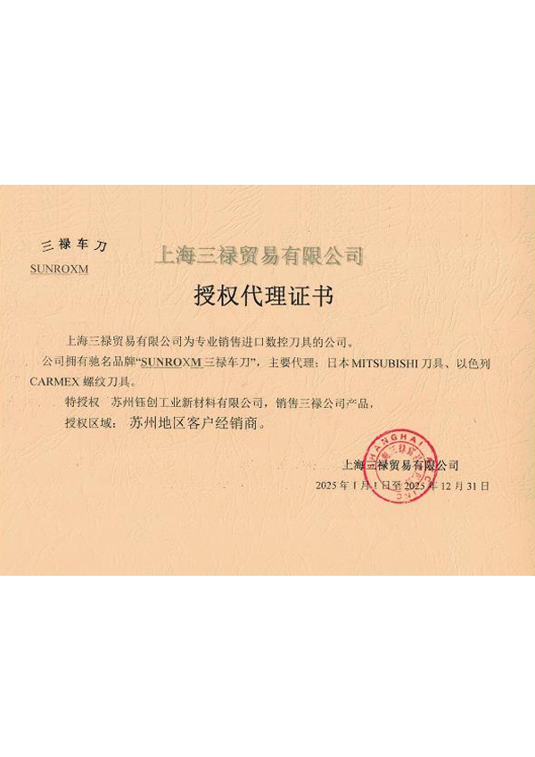 2025年钰创-三禄代理证书