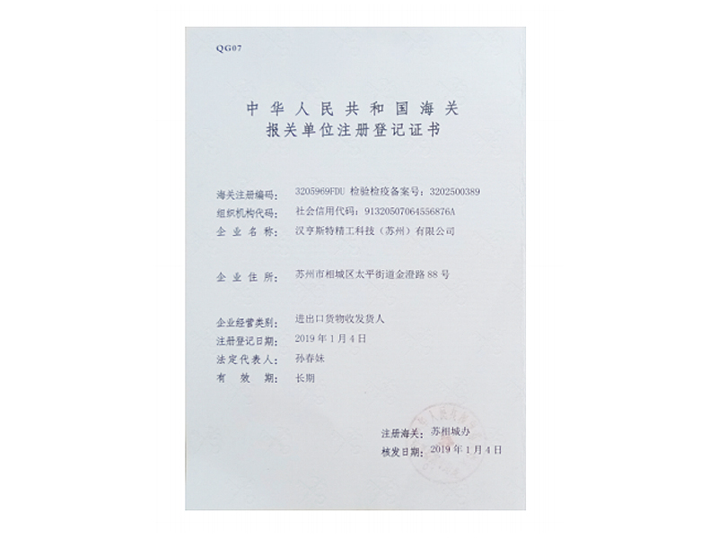 海关报关单位注册登记证书